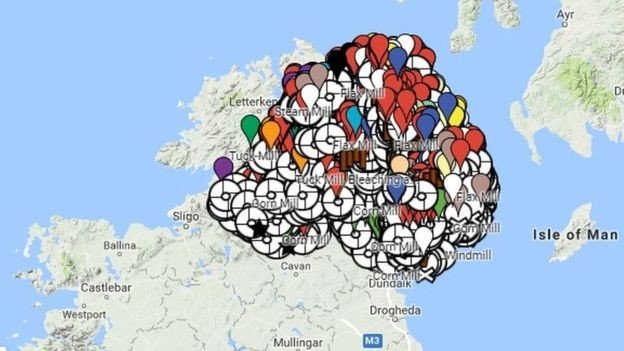 One man is on a mission to find out - amateur historian Sebastian Graham spends his spare time mapping all of the mills in Northern Ireland.The Mills of Northern Ireland project consists of the development of an online resource which maps over 3,200 mills of various types across Northern Ireland.The website, www.millsofnorthernireland.com, has been developed solely by Sebastian Graham without any external funding, using a range of source materials available via the Public Records Office, N.I. and local historical records and maps. Following his employment as a National Trust guide in Wellbrook Beetling Mill, Sebastian developed an interest in combining modern information technology and historical records to improve recording and interpretation of mill sites and buildings.He recognised the desire from many local and overseas visitors to be able to access information on mills and local connections to history. This led him to develop a website to map mills and their history. Sebastian, has in his own time, also carried out extensive site visits to historic mills and industrial sites, and has interviewed many local people about their local significance and stories. The aims and objectives of the project changed and modified as it progressed. Initially it was intended to gather information about mills solely in the vicinity of Cookstown, however, it then grew to include a much wider geographical focus, across Northern Ireland.Sebastian has received regular requests to conduct talks and presentations on the subject. Until the development of this resource, much of the information about this topic was not readily available to the general public. Through this project many more people are able to access and learn from the online resource and explore an enriched, permanent record of mill heritage in Northern Ireland. ."My aim is to record as many as possible before they are demolished," Mr Graham told BBC News NI.Guided by Valuation Office records, history journals, newspaper archives, historic maps and the personal memories of former mill staff, he has been building the database for the last three years.It contains details of former linen mills, corn mills, windmills, saw mills, and flax spinning sites, many of which have been demolished or fallen into dereliction.