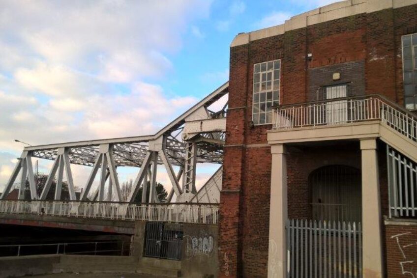 The Sutton Road Bridge in Hull is a Scherzer type rolling lift bridge.